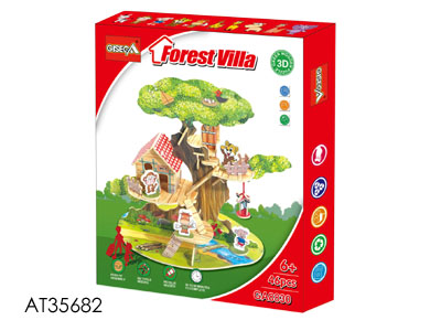 3D木质立体拼图DIY森林别墅模型积木(46片)