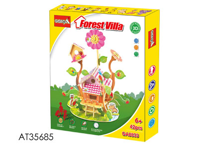 3D木质立体拼图DIY森林别墅模型积木(42片)