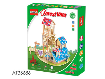 3D木质立体拼图DIY森林别墅模型积木(40片)